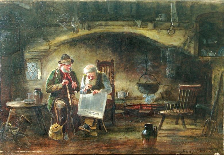 This is a very touching and respectful painting entitled "Welsh Peasants Reading the Franchise Bill". The artist was Jenny Bond and the date was 1884. It will have surprised many who saw it, around the time it was painted, since the idea that Welsh peasants could read must have been surprising to say the least. But many of them could read, thanks to the chapels, the Sunday schools and the circulating schools -- and many were quite aware of what was going on in the world. And many small farmers and labourers were members of the nonconformist chapels too -- where they read the scriptures and even became involved in matters of theological interpretation as deacons and congregation members.